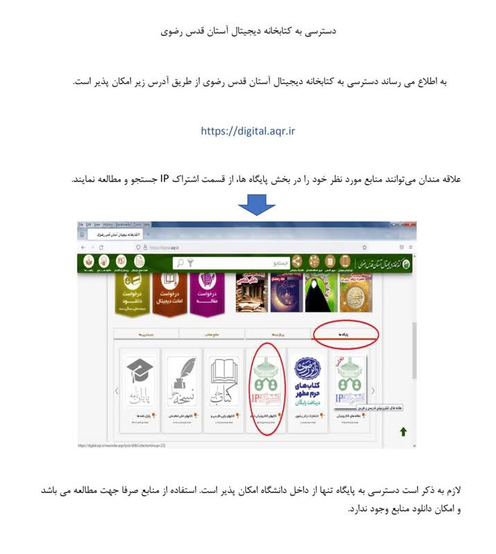 دسترسی به منابع کتابخانه دیجیتال آستان قدس رضوی